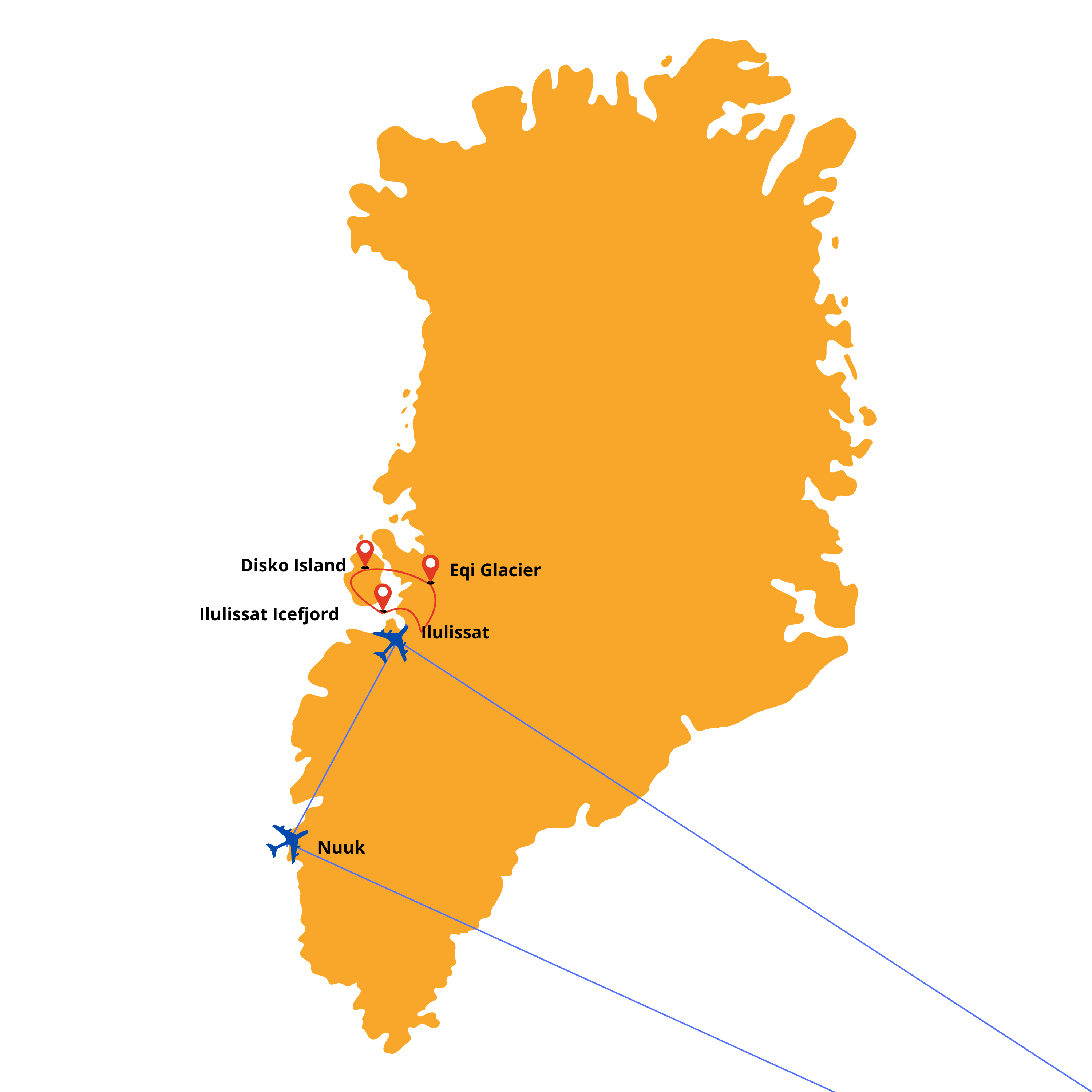 • Bilet lotniczy z Ilulissat do Nuuk wraz z bagażem rejestrowanym 20 kg