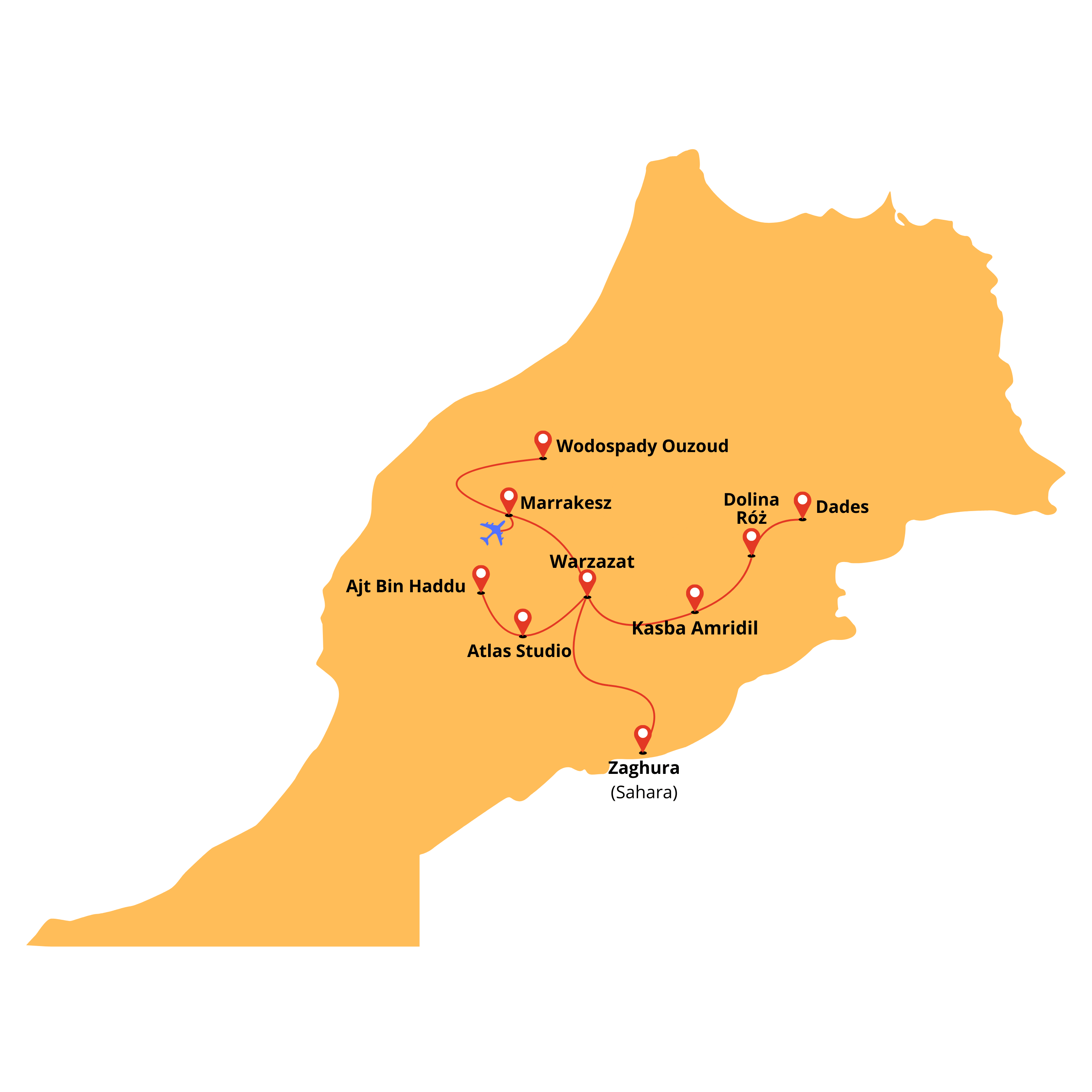 Odbierzemy wszystkich uczestników wyjazdu przylatujących na lotnisko w Marrakeszu, a następnie ruszymy w